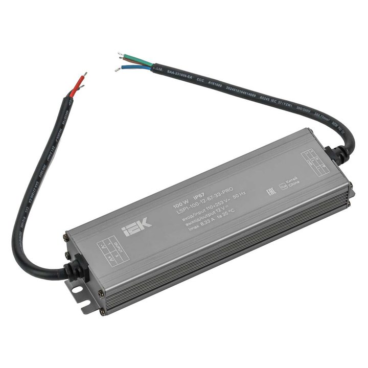 - Высокая степень защиты IP67: драйвер не боится пыли и водных брызг, что позволяет использовать его на улице и во влажных помещениях.