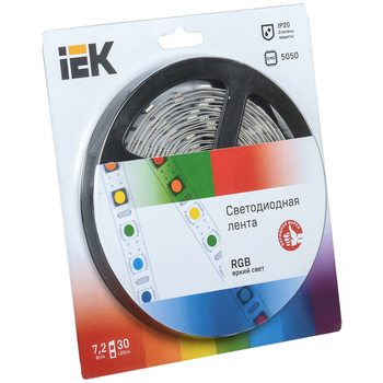 Лента светодиодная LED LSR-5050RGB30-7.2-IP20-12V 7Вт/м полноцвет. (уп.5м) ИЭК