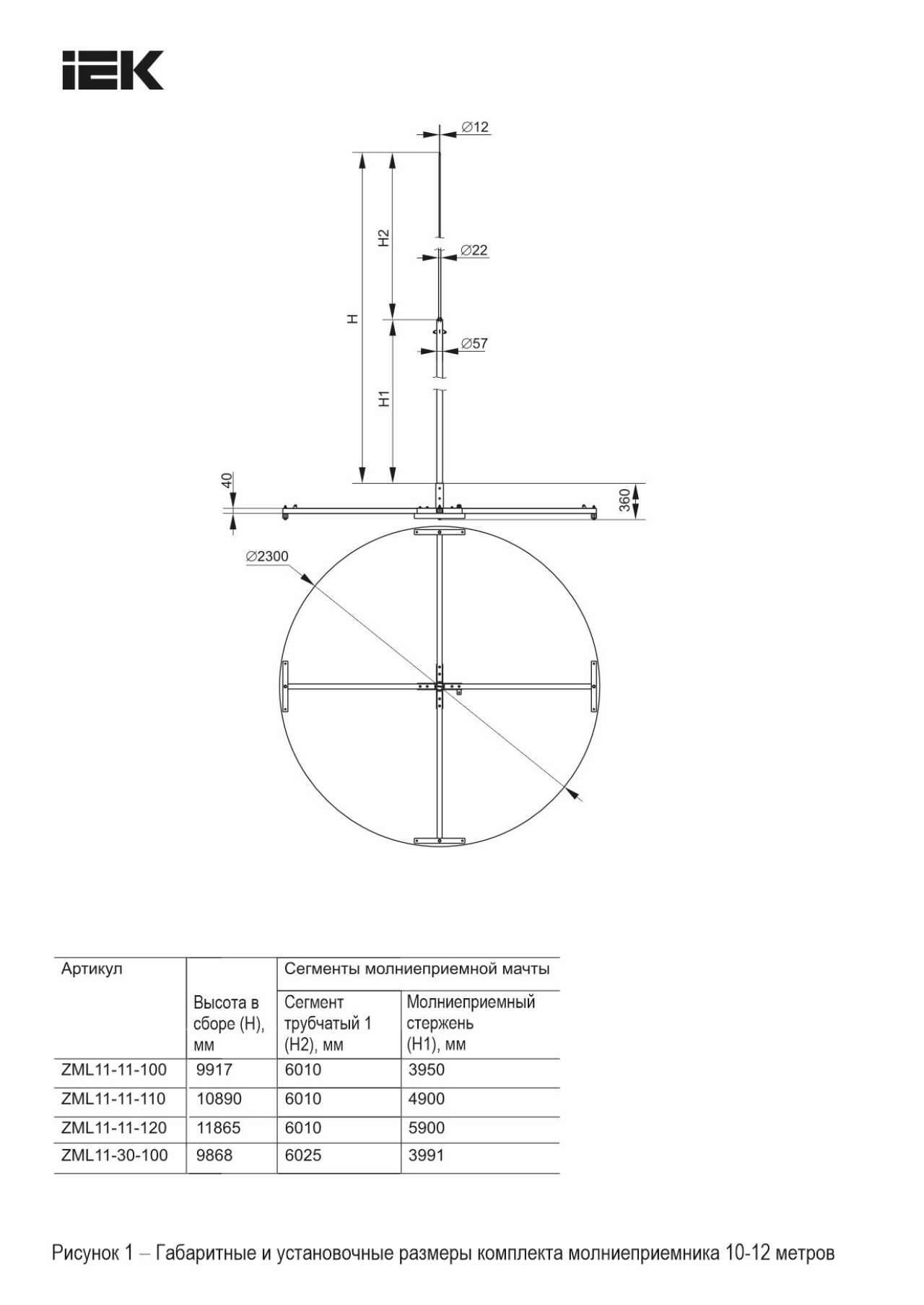Мачта молниеприемная стержневая L=11м оцинкованная сталь IEK