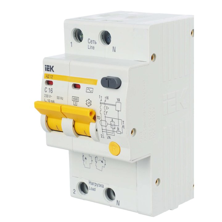 Выключатель автоматический дифференциального тока 2п C 16А 10мА тип AC 4.5кА АД-12 3.5мод. ИЭК