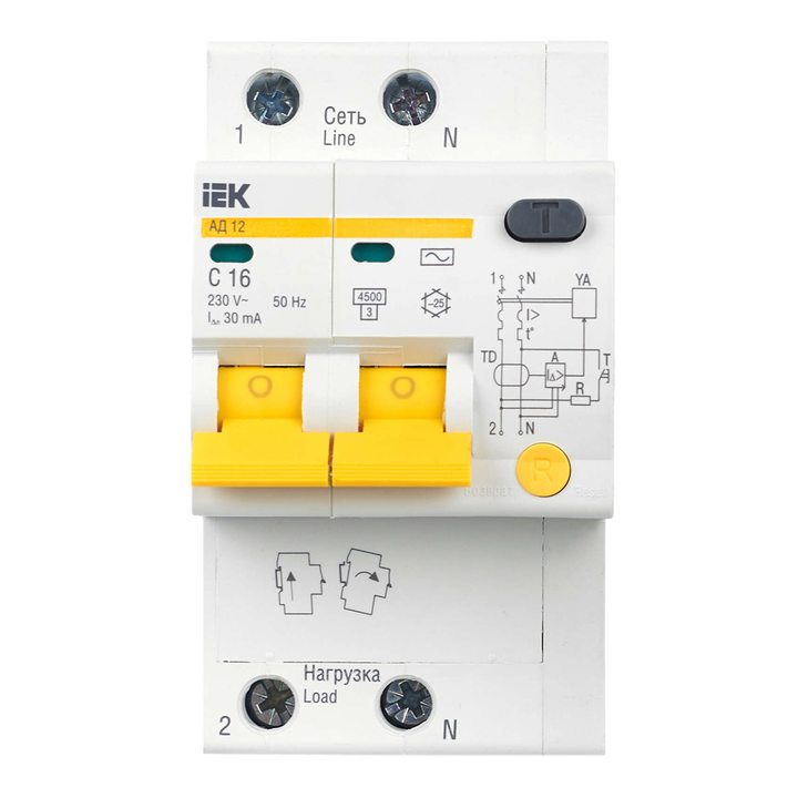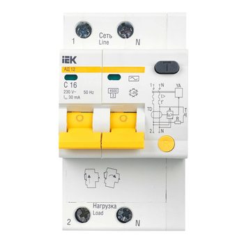 Выключатель автоматический дифференциального тока 2п C 16А 30мА тип AC 4.5кА АД-12 IEK MAD10-2-016-C-030