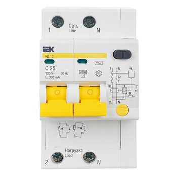 Выключатель автоматический дифференциального тока 2п C 25А 300мА тип AC 4.5кА АД-12 3.5мод. ИЭК