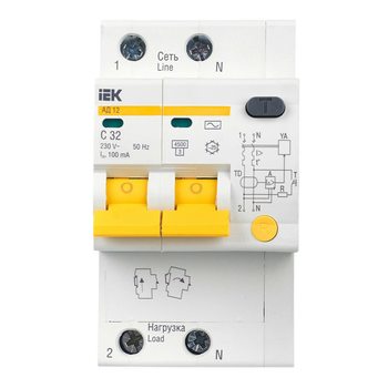 Выключатель автоматический дифференциального тока 2п C 32А 100мА тип AC 4.5кА АД-12 3.5мод. ИЭК