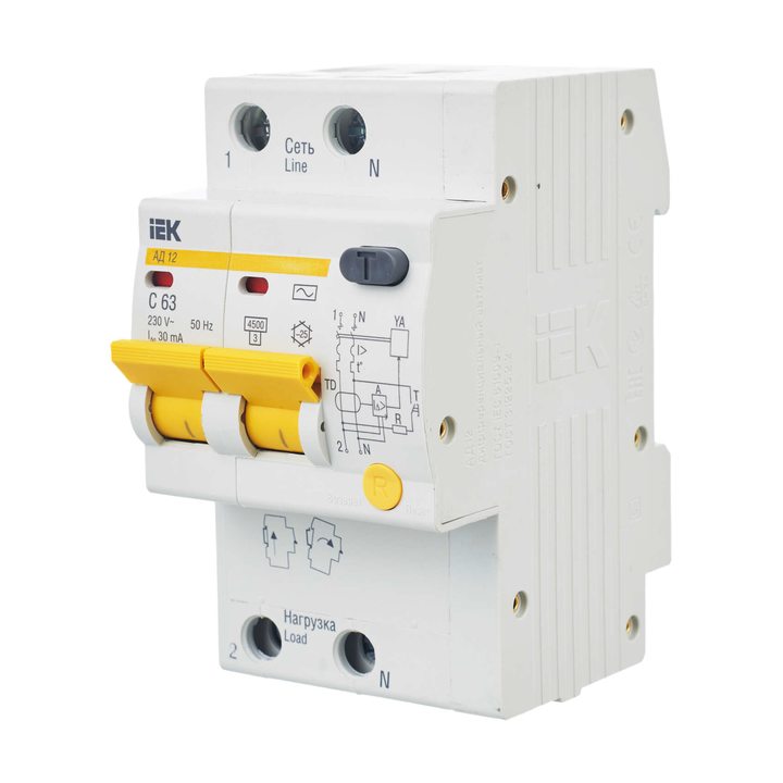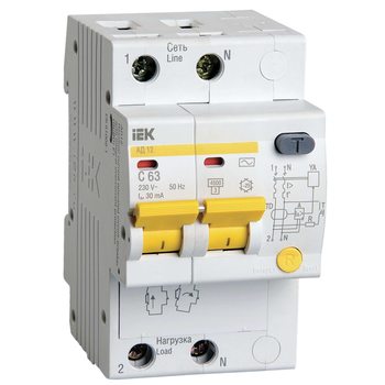 Выключатель автоматический дифференциального тока 2п C 63А 30мА тип AC 4.5кА АД-12 4мод. ИЭК