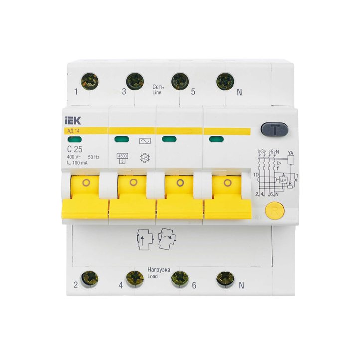 Выключатель автоматический дифференциального тока 4п C 25А 100мА тип AC 4.5кА АД-14 6.5мод ИЭК