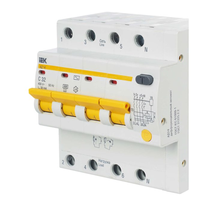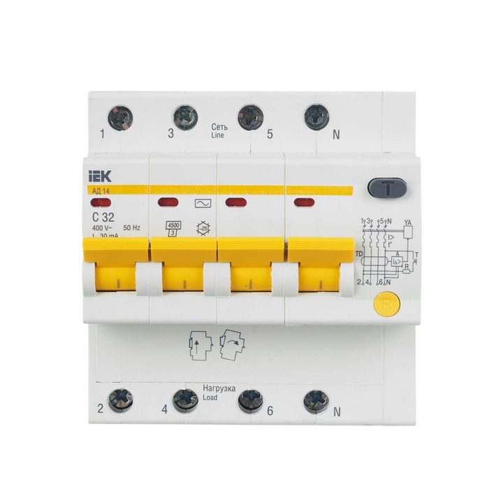 Выключатель автоматический дифференциального тока 4п C 32А 30мА тип AC 4.5кА АД-14 IEK MAD10-4-032-C-030