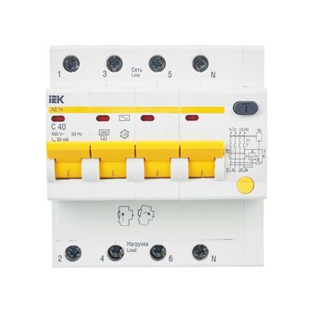Выключатель автоматический дифференциального тока 4п C 40А 30мА тип AC 4.5кА АД-14 IEK MAD10-4-040-C-030