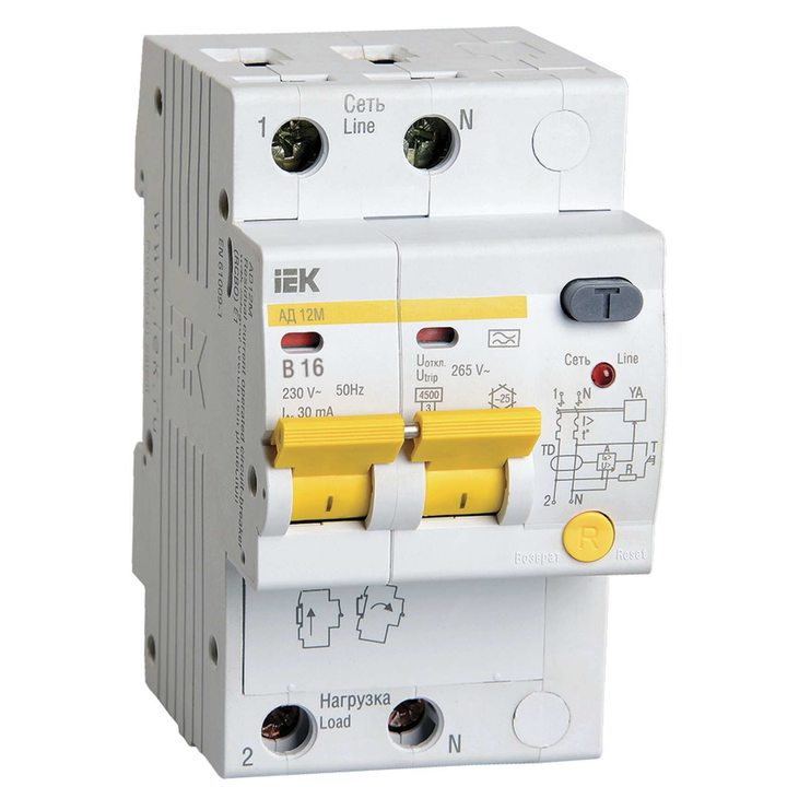 Выключатель автоматический дифференциального тока 2п B 16А 30мА тип A 4.5кА АД-12М 3.5мод. ИЭК