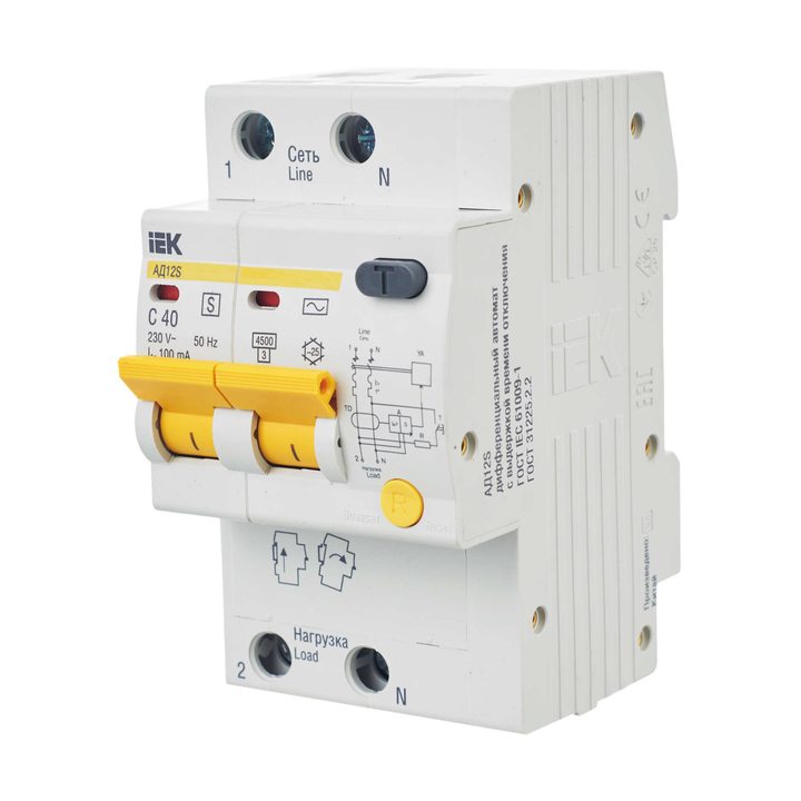 Выключатель автоматический дифференциального тока селективный 2п 40А 100мА тип AC АД12S ИЭК