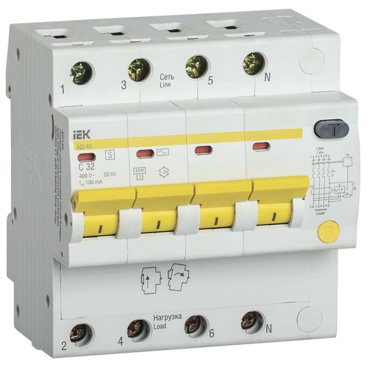 Выключатель автоматический дифференциального тока селективный 4п 32А 100мА тип AC АД12S ИЭК