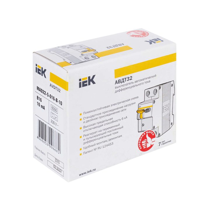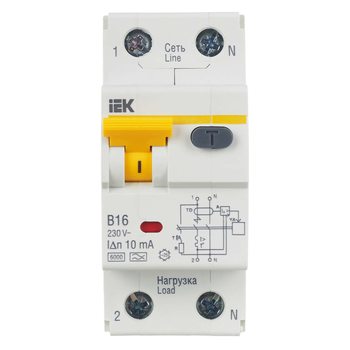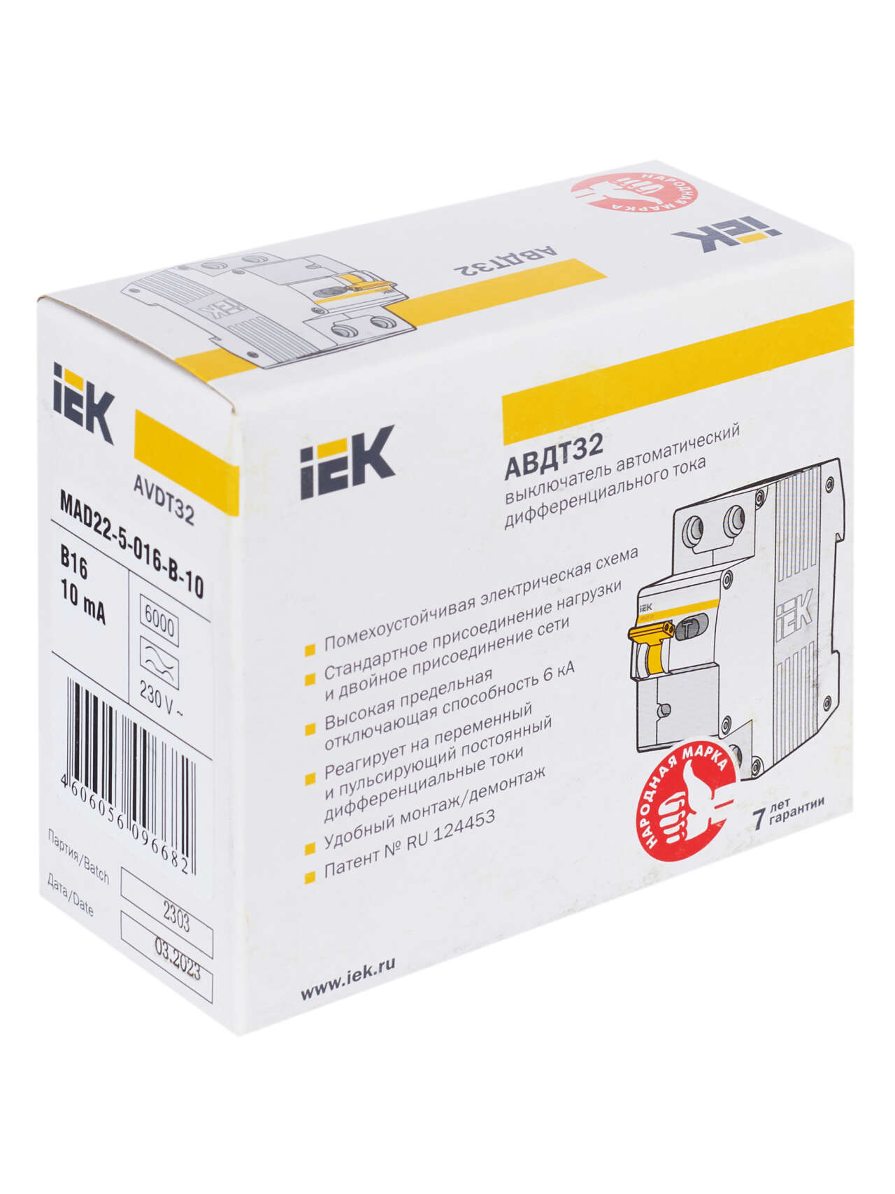 Выключатель автоматический дифференциального тока 2п (1P+N) B 16А 10мА тип A 6кА АВДТ-32 2мод. ИЭК