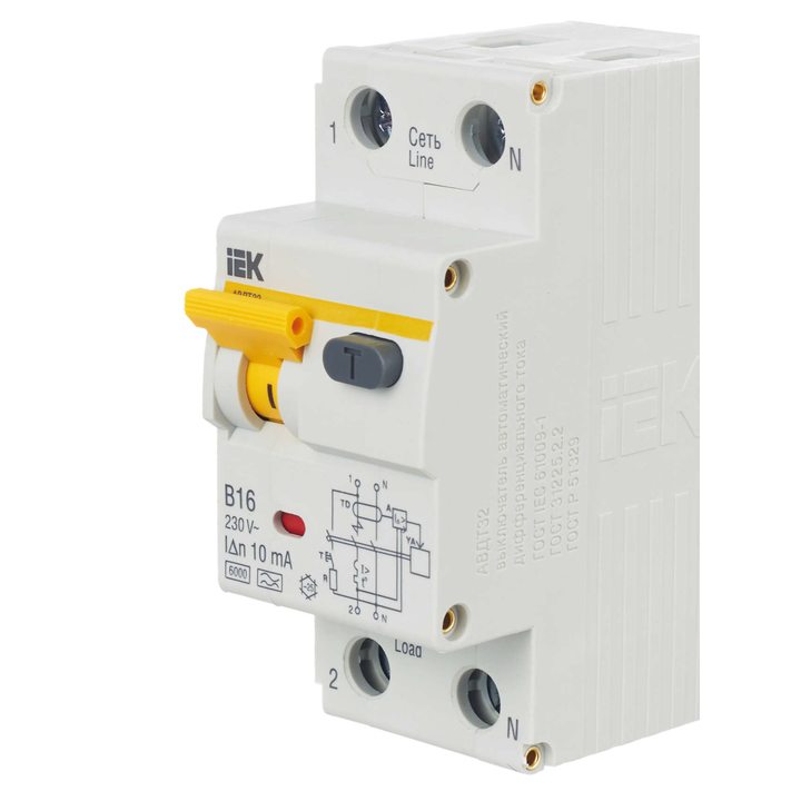- Увеличенная способность 6 кА позволяет устанавливать АВДТ в качестве вводных автоматов защиты.