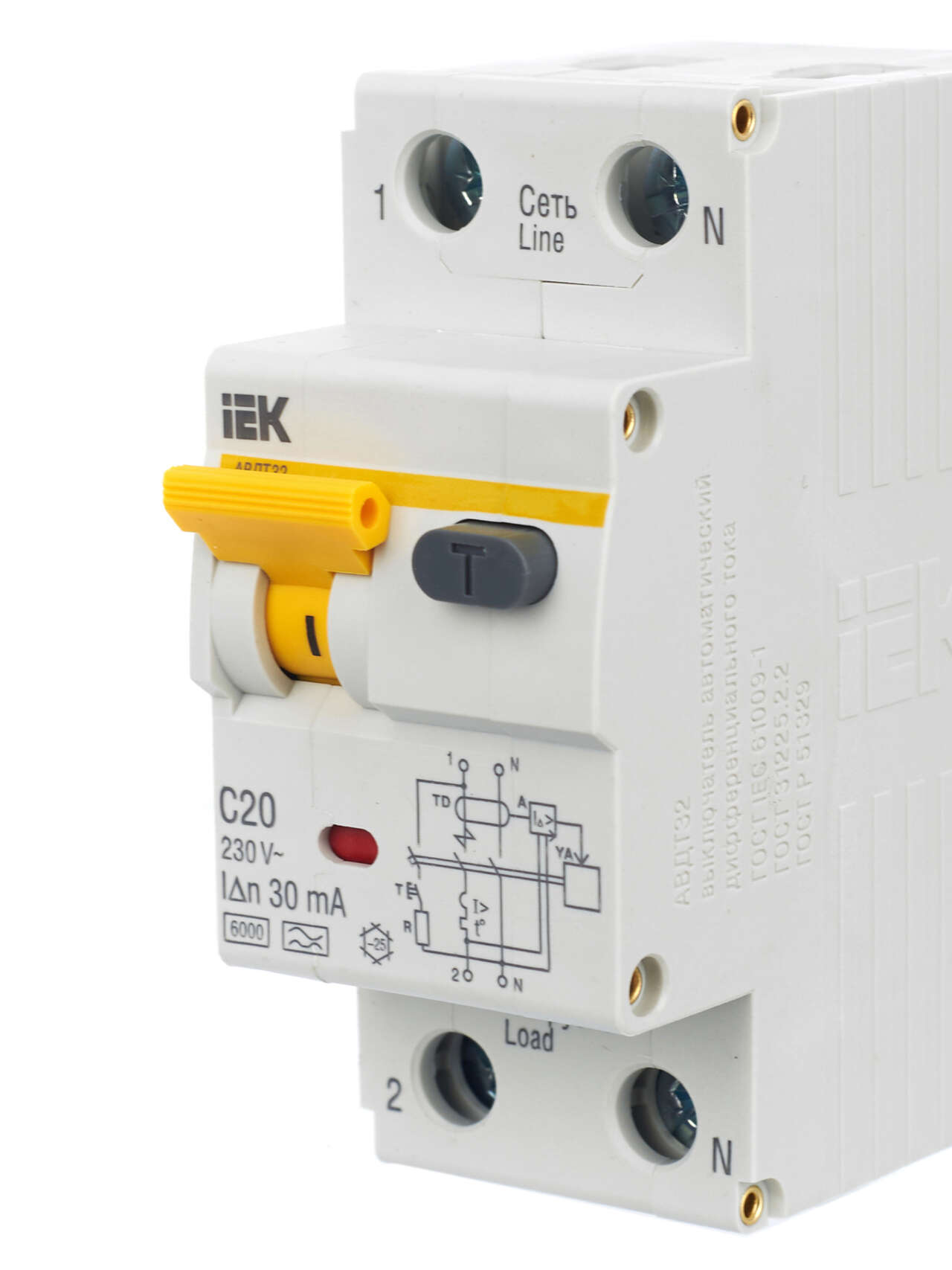 - Увеличенная способность 6 кА позволяет устанавливать АВДТ в качестве вводных автоматов защиты.