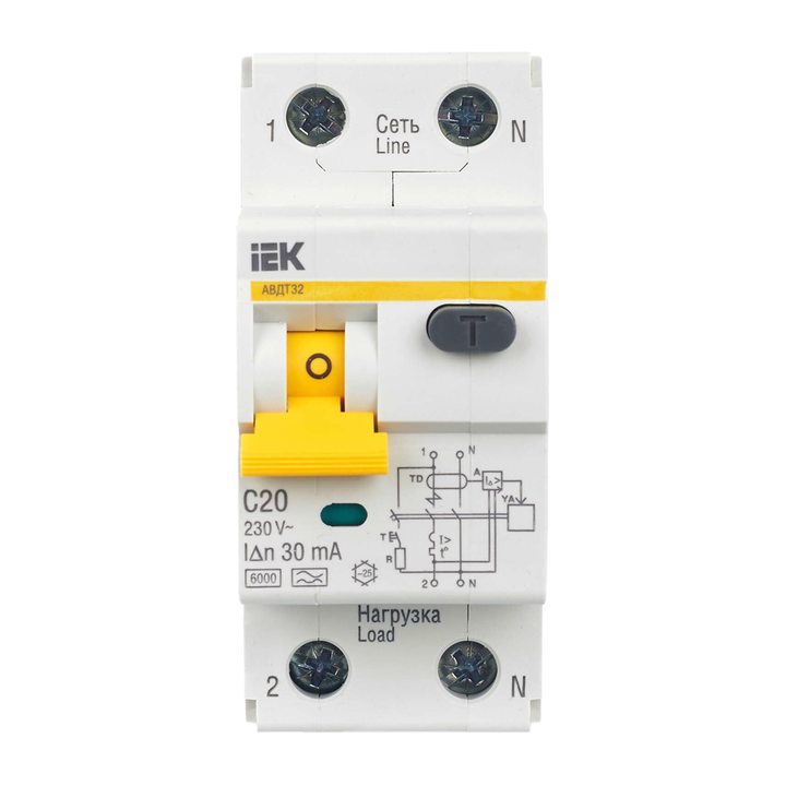 Выключатель автоматический дифференциального тока 2п (1P+N) C 20А 30мА тип A 6кА АВДТ-32 IEK MAD22-5-020-C-30