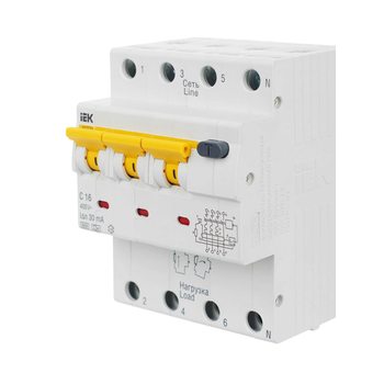 Выключатель автоматический дифференциального тока 4п (3P+N) C 16А 30мА тип A 6кА АВДТ-34 IEK MAD22-6-016-C-30