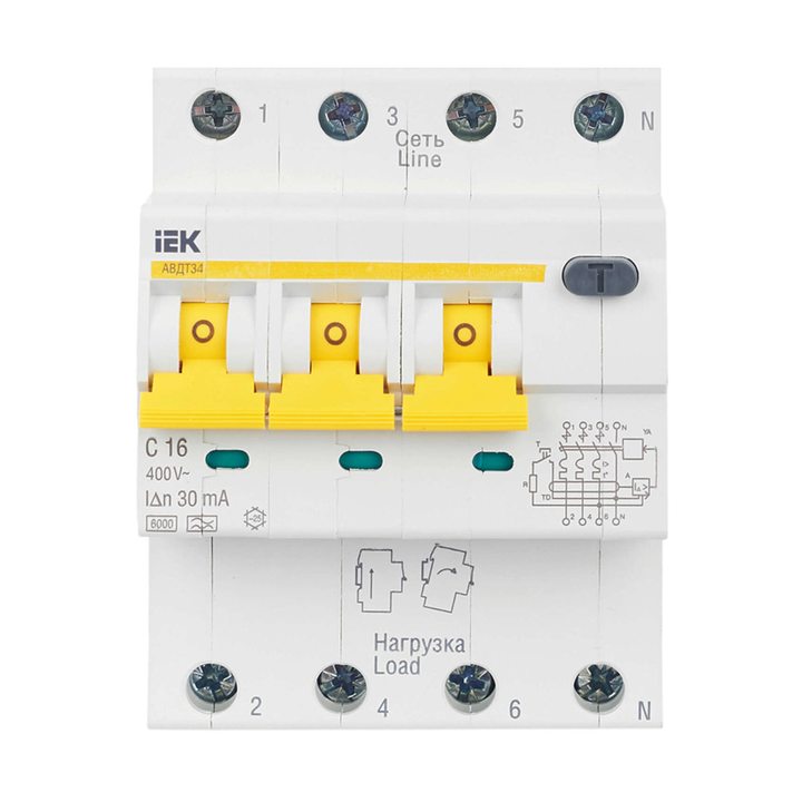- Номинальный условный ток короткого замыкания 6000А позволяет устанавливать автоматические выключатели дифференциального тока АВДТ34 в качестве вводных автоматов защиты.