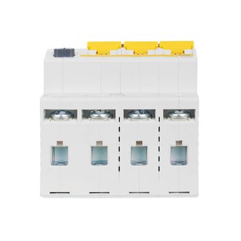 Компактная конструкция автоматического выключателя, управляемого дифференциальным током со встроенной защитой от сверхтоков, занимает 4 стандартных модуля в щитке.