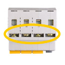 Возможность одновременного присоединения шиной FORK и гибким проводником для распределения питания цепи через верхние зажимы, а также возможность соединения шиной PIN.