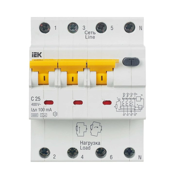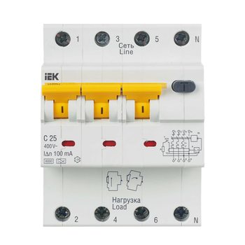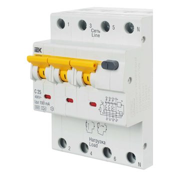 Выключатель автоматический дифференциального тока 4п (3P+N) C 25А 100мА тип A 6кА АВДТ-34 4мод. ИЭК