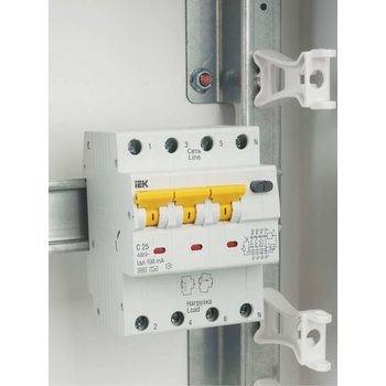 Конструкция АВДТ34 обеспечивает быстрый монтаж/демонтаж без использования инструментов и дополнительную надежность крепления на DIN-рейке.