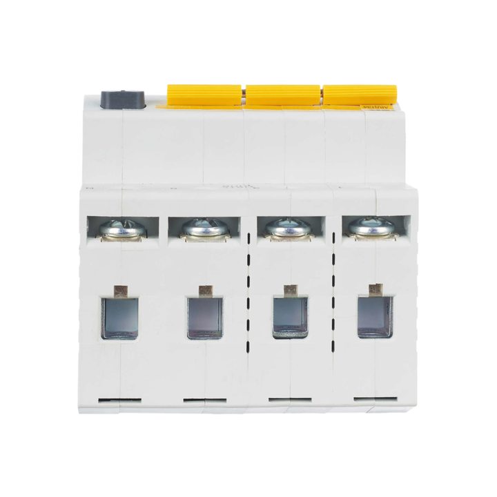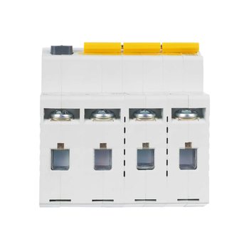 - Главные контакты 4-х полюсного автоматического выключателя дифференциального тока АВДТ34 сконструированы так, что нейтральный контакт замыкается раньше и отключается позже, что позволяет избежать перекоса фаз напряжения нагрузки, аналогично "обрыву нуля" в сети.
