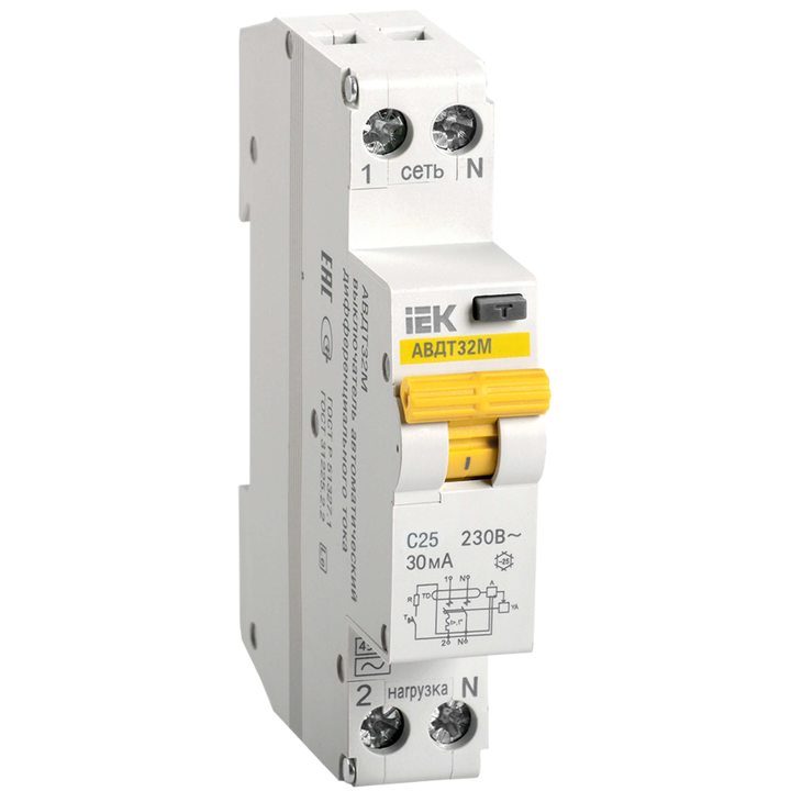 Выключатель автоматический дифференциального тока 1п C 25А 30мА тип A 4.5кА АВДТ-32М ИЭК