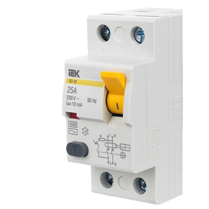 Выключатель дифференциального тока (УЗО) 2п 25А 10мА тип AC ВД1-63 ИЭК