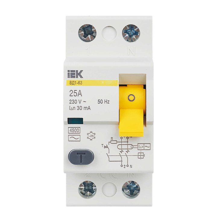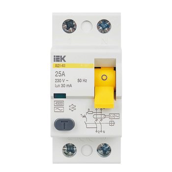 Выключатель дифференциального тока (УЗО) 2п 25А 30мА тип AC ВД1-63 IEK MDV10-2-025-030