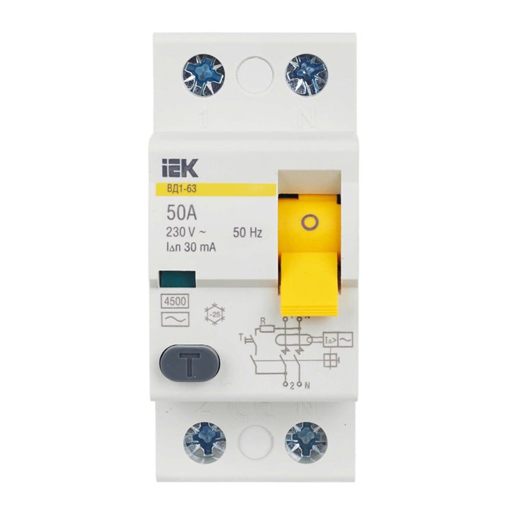 Выключатель дифференциального тока (УЗО) 2п 50А 30мА тип AC ВД1-63 IEK MDV10-2-050-030