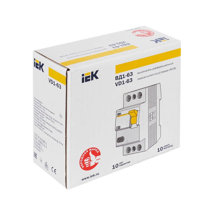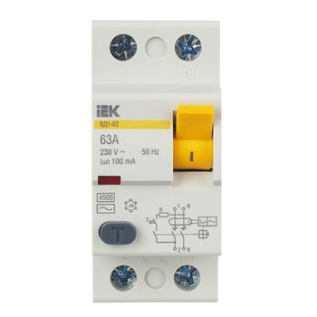 Выключатель дифференциального тока (УЗО) 2п 63А 100мА тип AC ВД1-63 ИЭК