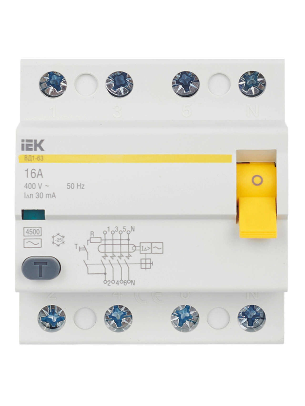 Выключатель дифференциального тока (УЗО) 4п 16А 30мА тип AC ВД1-63 IEK MDV10-4-016-030