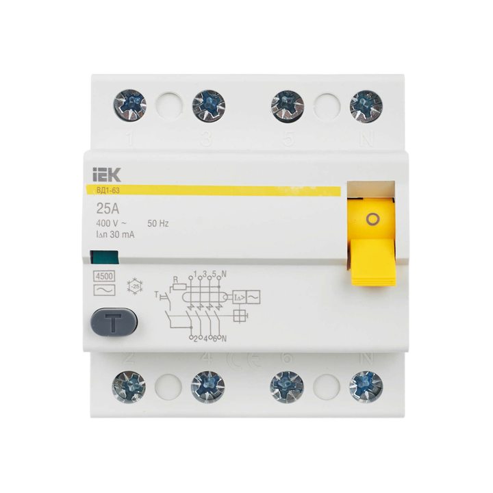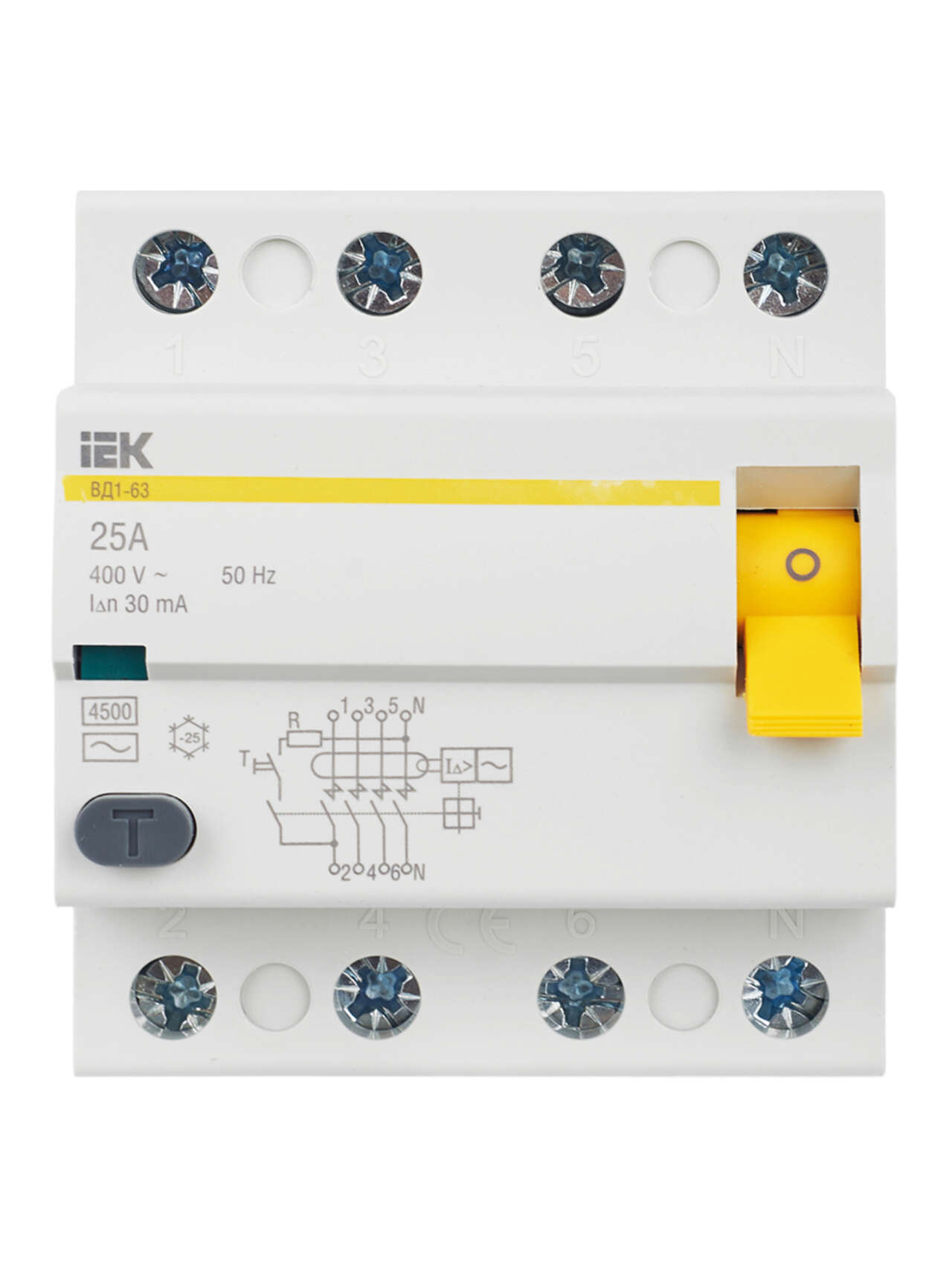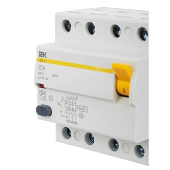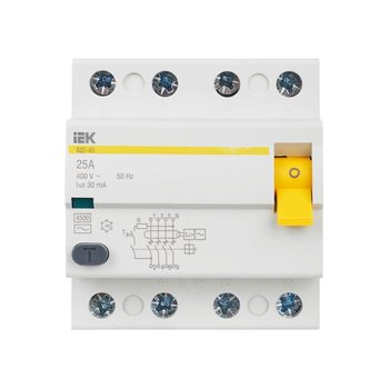 Выключатель дифференциального тока (УЗО) 4п 25А 30мА тип AC ВД1-63 IEK MDV10-4-025-030