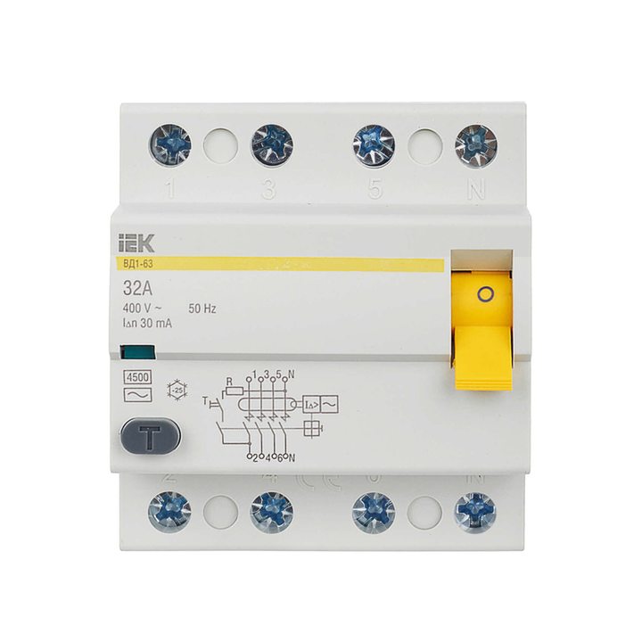 Выключатель дифференциального тока (УЗО) 4п 32А 30мА тип AC ВД1-63 IEK MDV10-4-032-030