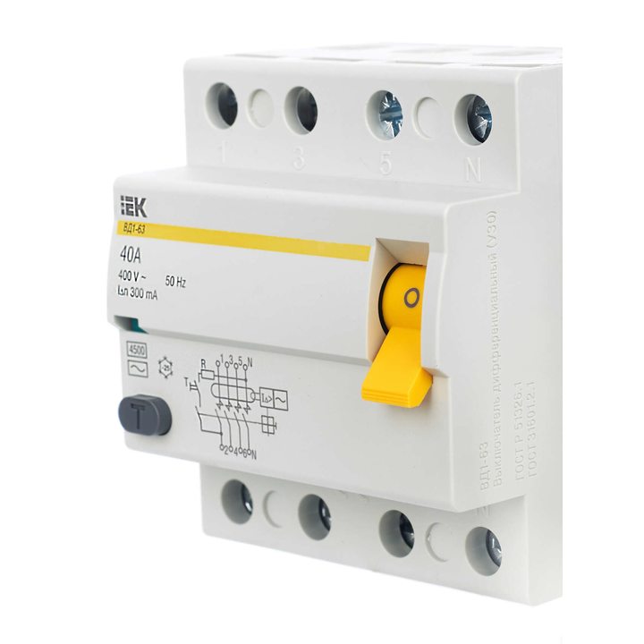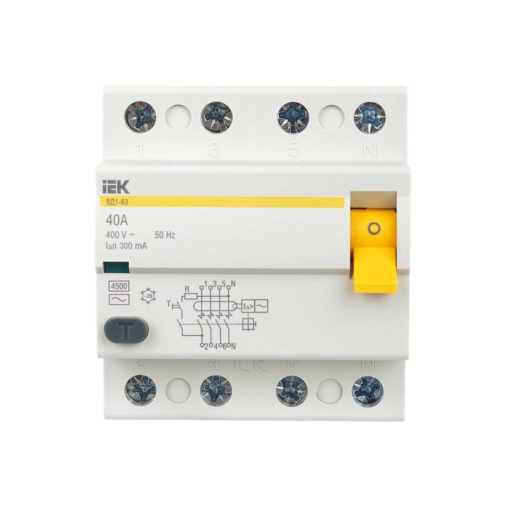 Выключатель дифференциального тока (УЗО) 4п 40А 300мА тип AC ВД1-63 IEK MDV10-4-040-300