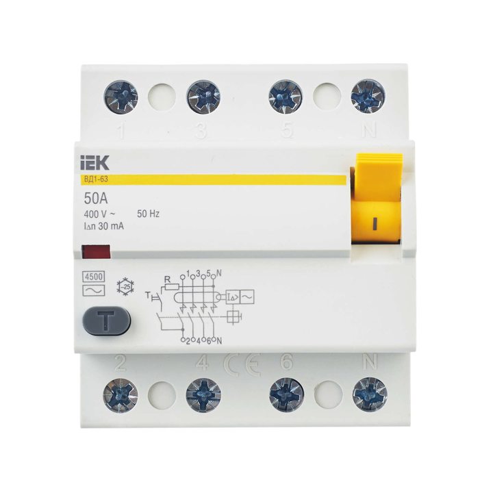 Выключатель дифференциального тока (УЗО) 4п 50А 30мА тип AC ВД1-63 IEK MDV10-4-050-030