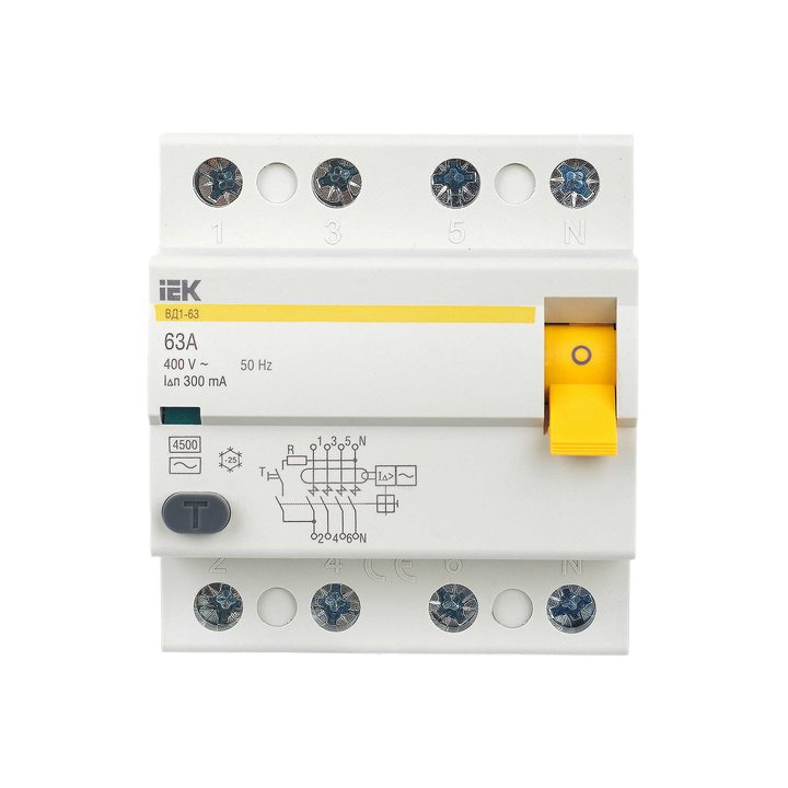 Выключатель дифференциального тока (УЗО) 4п 63А 300мА тип AC ВД1-63 ИЭК