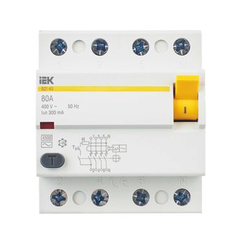 Выключатель дифференциального тока (УЗО) 4п 80А 300мА тип AC ВД1-63 ИЭК