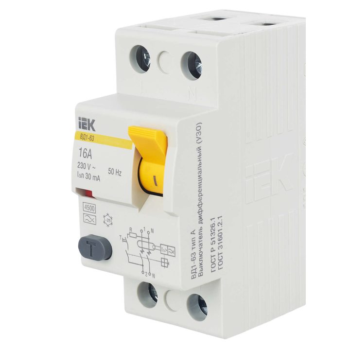 Выключатель дифференциального тока (УЗО) 2п 16А 30мА тип A ВД1-63 ИЭК
