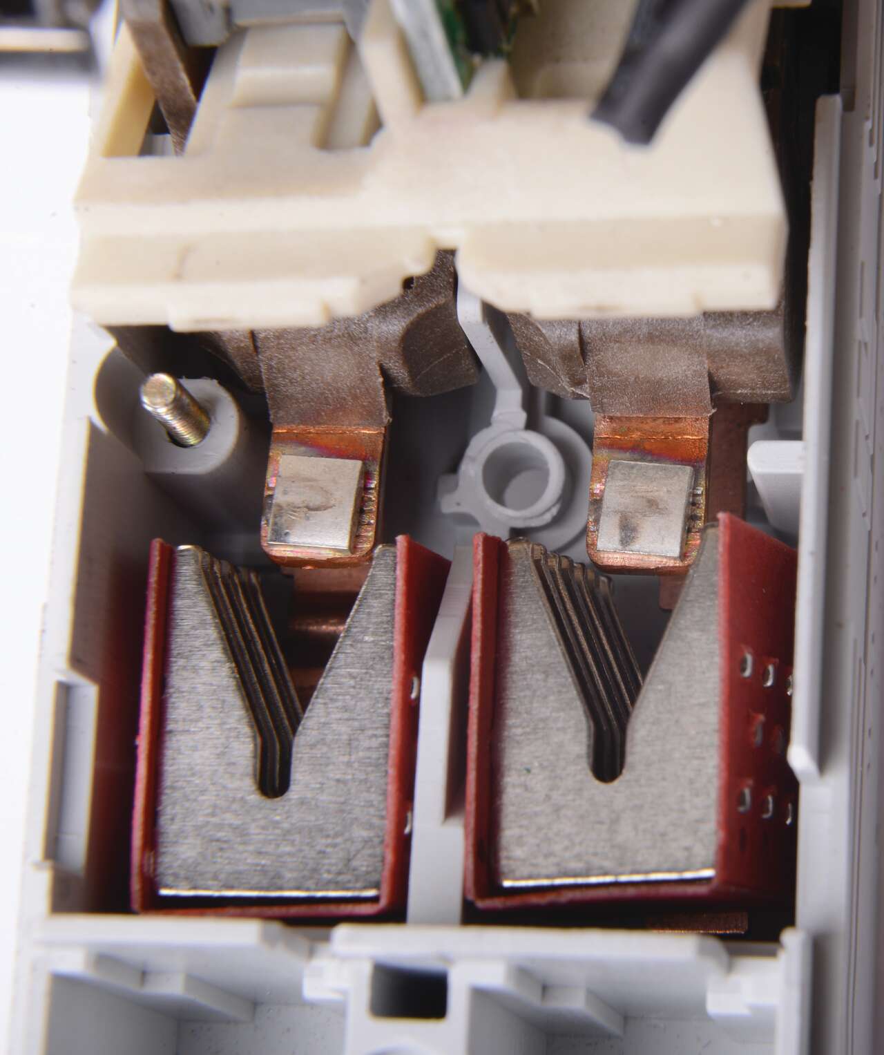 Дугогасительные решетки с увеличенным количеством пластин, расположенные в каждом полюсе, позволяют достичь более эффективного гашения электрической дуги.