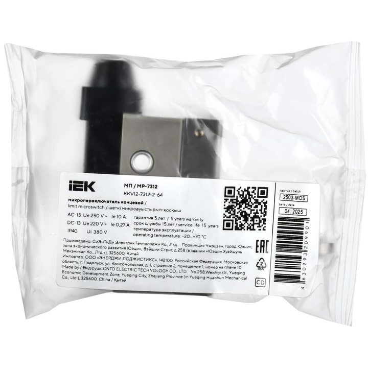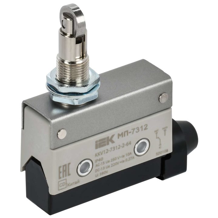 Микропереключатель концевой МП-7312 вертикальный толкатель с нажимным роликом резьбовое крепление IP64 IEK