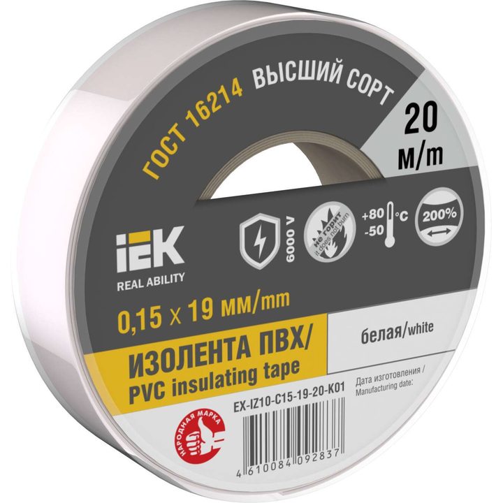 MIXTAPE 7 Изолента 0,15х15мм белая 20м IEK