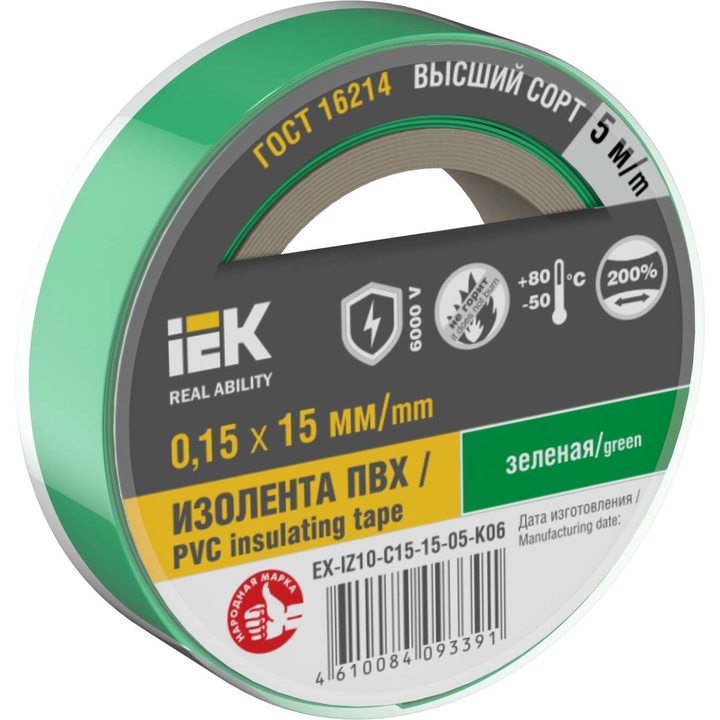 MIXTAPE 7 Изолента 0,15х15мм зеленая 5м IEK