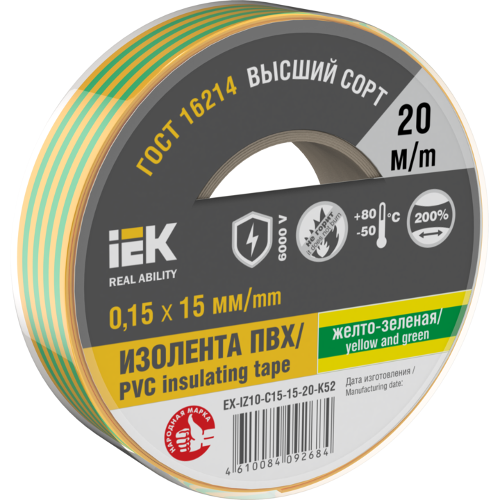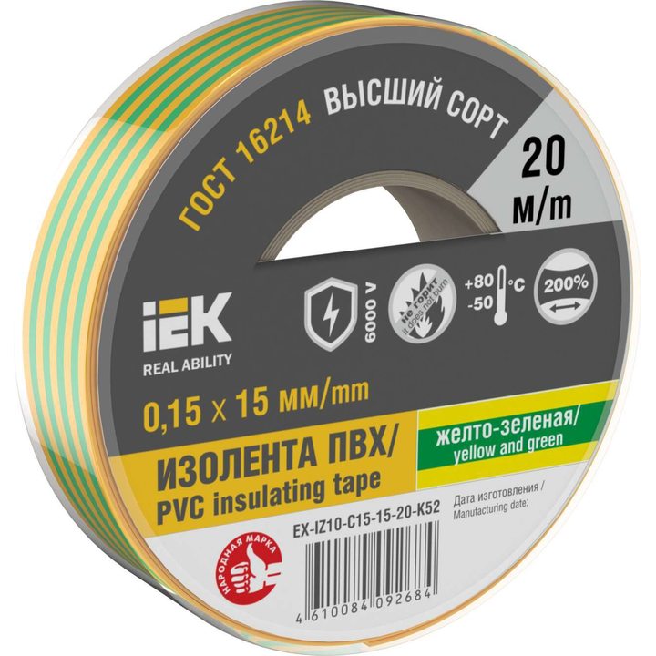 MIXTAPE 7 Изолента 0,15х15мм желто-зеленая 20м IEK