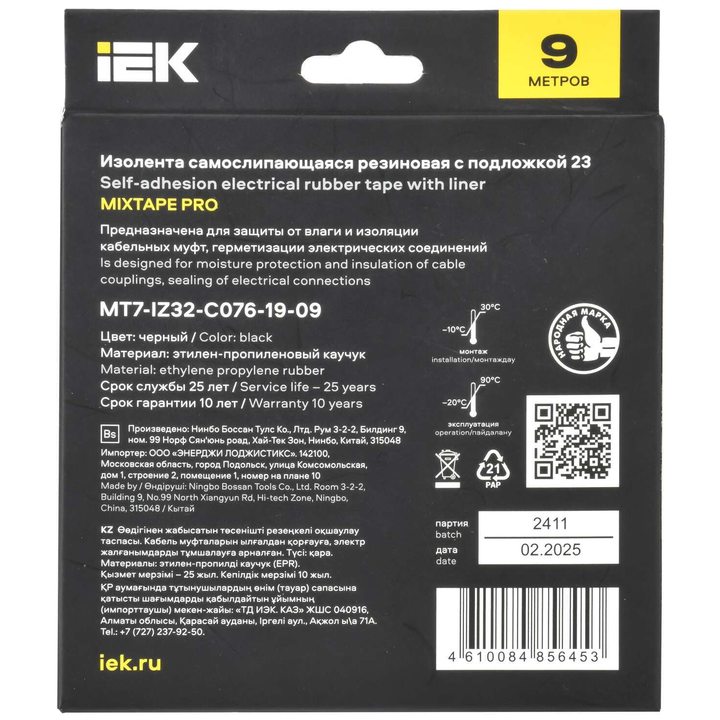 MIXTAPE PRO Изолента самослипающаяся резиновая с подложкой 0,76х19мм 9м 23 IEK