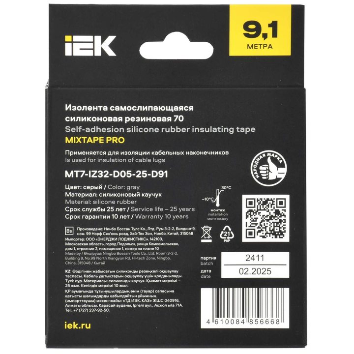 MIXTAPE PRO Изолента самослипающаяся силиконовая резиновая 0,5х25мм 9,1м 70 IEK