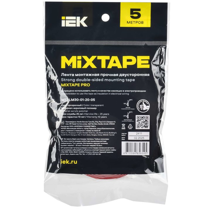 MIXTAPE PRO Лента монтажная прочная двусторонняя 1х20мм 5м IEK