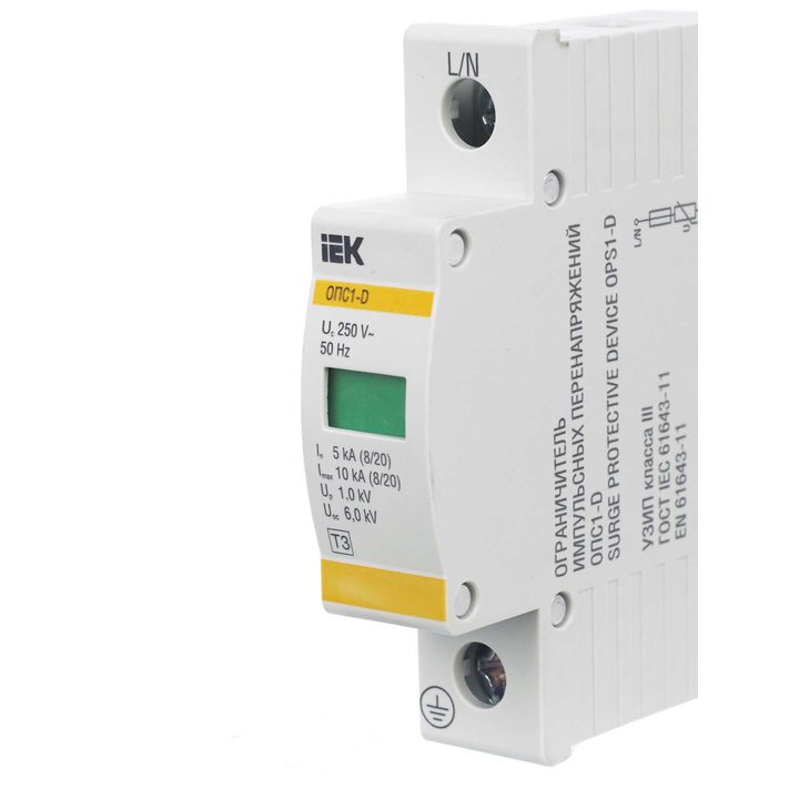 Ограничитель перенапряжения ОПС1-D 1P IEK MOP20-1-D