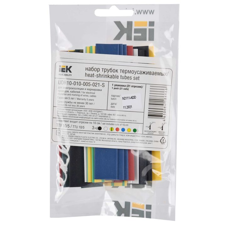 Набор трубок термоусадочных нг-LS 10/5 100мм 7 цветов по 3шт IEK UDR10-010-005-021-S