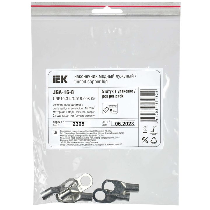 Наконечник медный луженый JGA-16-8 (ТМЛ) (5шт/упак) IEK