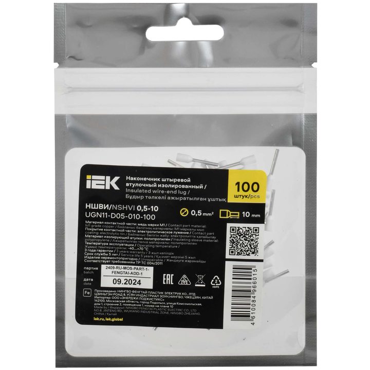 Наконечник НШВИ 0,5-10 белый (100шт/упак) IEK